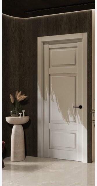 Modern design: CA 3 Panel, with its sleek primed finish and versatile appearance featuring straight lines and three decorative panels, is a stylish and contemporary choice for any home, especially for a transitional interior. When painted in bright colors, this model transforms into a sophisticated accent in a room. When paired with a metal frame, it becomes an invisible door, a space-saving solution that visually expands the space by eliminating protruding parts.