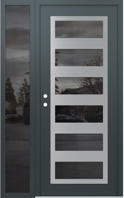 Modern Steel Front Door Diamond C9 48″ x 80″ anthracite/anthracite mirrored Glass Panel stainless steel RHI with Sidelite mirrored Glass