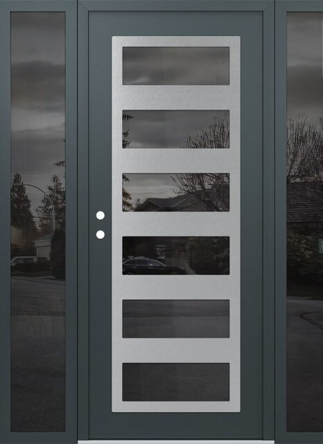 Modern Steel Front Door Diamond C9 60″ x 80″ anthracite/anthracite mirrored Glass Panel stainless steel RHI with 2 Sidelites mirrored Glass